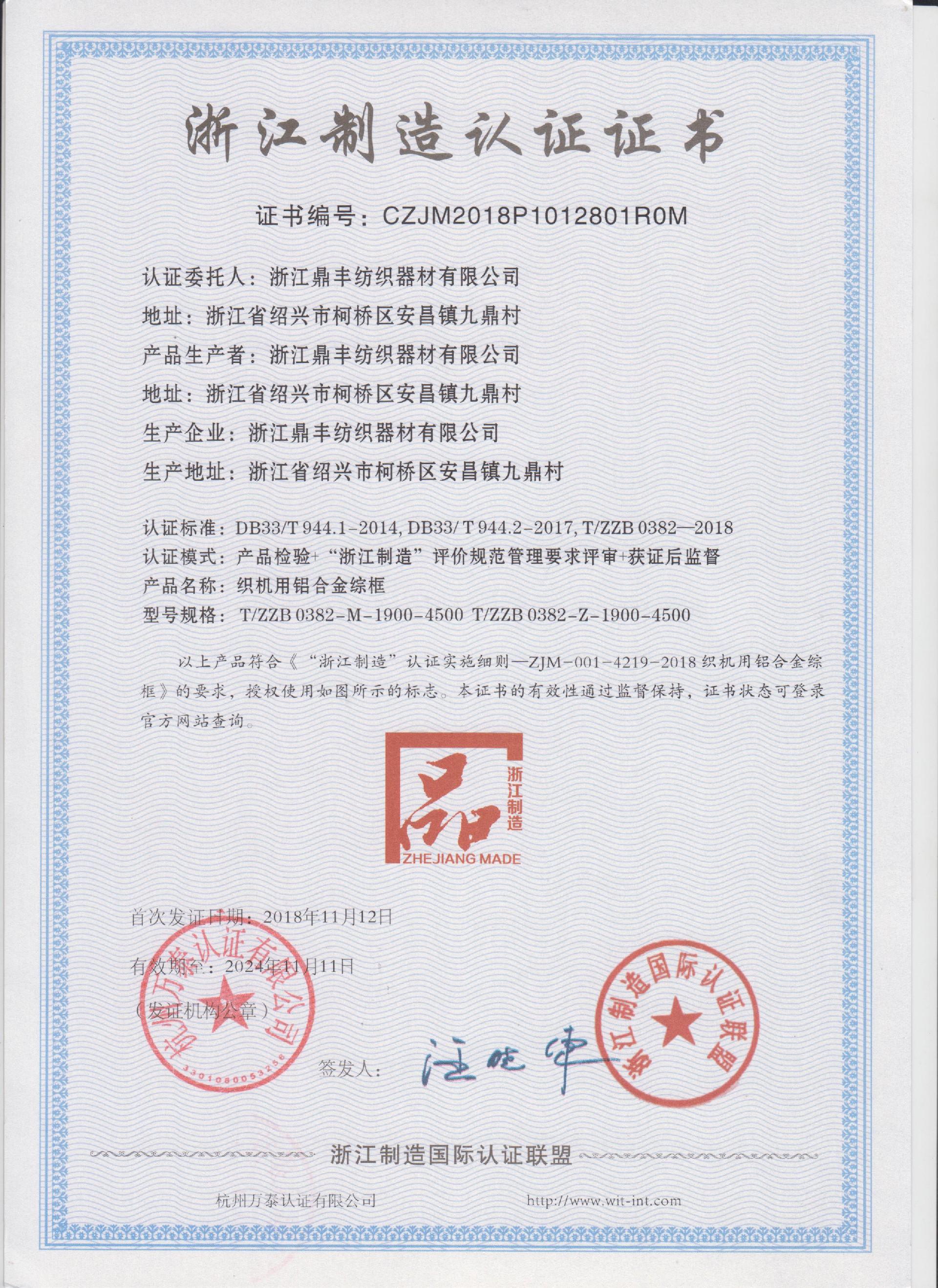 公司現(xiàn)有固定資產(chǎn)6000余萬(wàn)元,員工300余人,現(xiàn)具有年產(chǎn)噴氣異型筘12萬(wàn)米,劍桿筘32萬(wàn)米,噴水筘5萬(wàn)米,綜框20萬(wàn)片,鋼片綜2億片,停經(jīng)片1.5億片, 織軸1.2萬(wàn)套的生產(chǎn)能力。公司“越泉”商標(biāo)被評(píng)為“中國(guó)馳名商標(biāo)”。公司通過ISO9001 :2015國(guó)際質(zhì)量體系認(rèn)證,ISO14001:2015國(guó)際環(huán)境管理體系認(rèn)證,ISO45001:2018國(guó)際職業(yè)健康安全管理體系認(rèn)證,噴氣織機(jī)用鋼筘和織機(jī)用鋁合金綜框獲得“浙江制造”品牌認(rèn)證,公司擁有自營(yíng)進(jìn)出口權(quán),產(chǎn)品暢銷全國(guó)并遠(yuǎn)銷印度、巴基斯坦、土耳其、埃及、哥倫比亞、意大利等國(guó)家和地區(qū)。